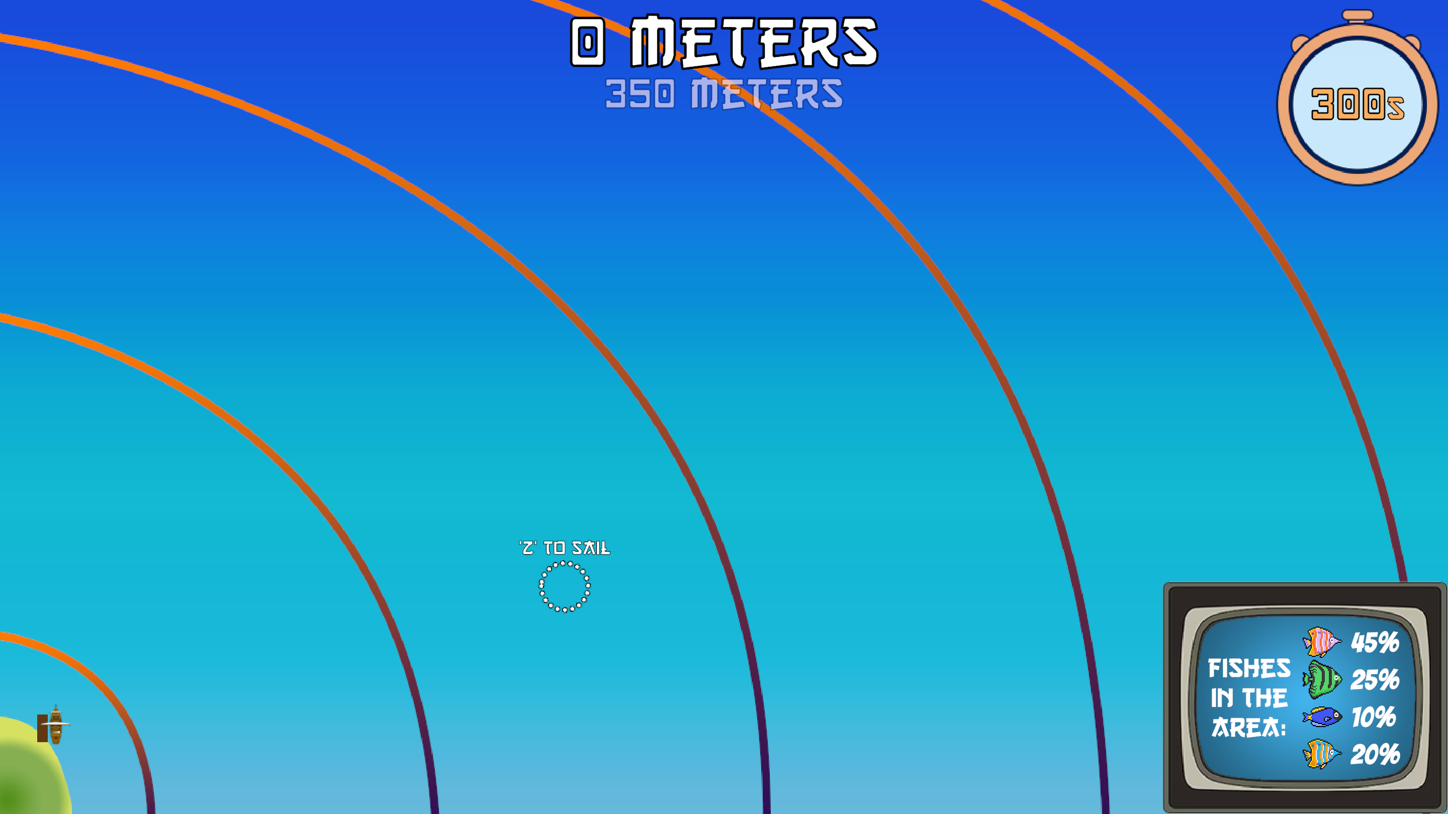 In a day, you will be fishing for 300 seconds (5 minutes). There are 3 phase: Strat, Sailing & Fishing. In the strat phase, you will move the pointer where the boat should move. In the sailing phase, the boat will move to the pointer. In the fishing phase, you will need to catch fish using baits and net.