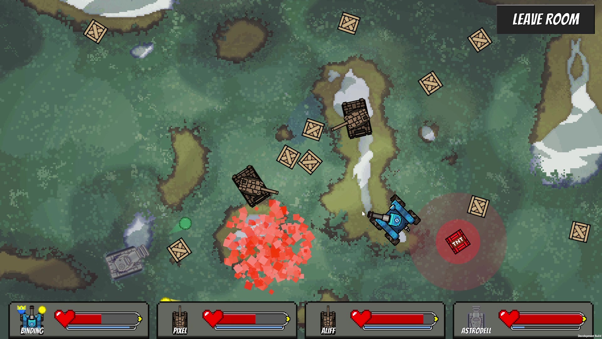 Drive your tank and use the knockback of your cannon shots to dodge incoming bullets. Ram into crates dropped by planes to reveal a TNT inside that you can ignite by ramming into them to cause a huge explosion.